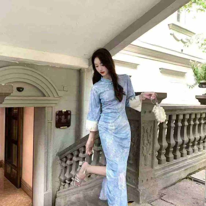 9.9清726件新中式旗袍 国风印花修身 春夏复古国风立领...