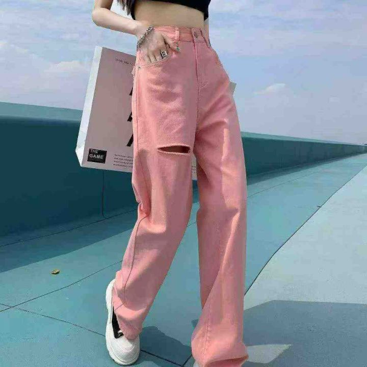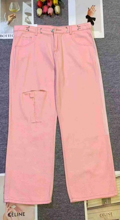 多巴胺樱花粉直筒宽松百搭牛仔裤,[爱心]360件左右,码数M-4XL,大码多,穿90-160斤,有风痕,(模特图仅供参考),不介意的宝子来