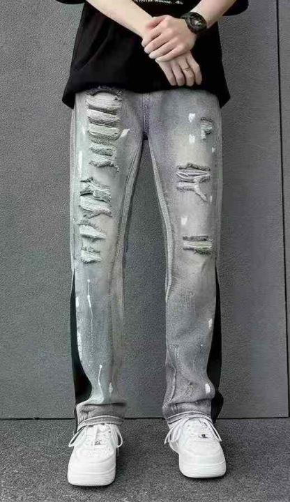 春夏季新款男美潮高街复古泼墨涂鸦直筒微喇叭牛仔裤,独立包装带腰卡,码数M-2XL码,100件,全清8.9元超低价秒杀!