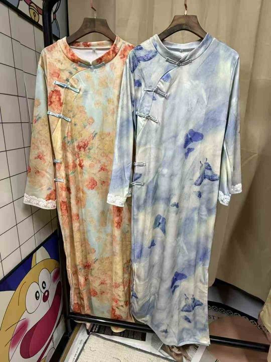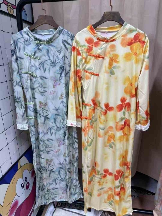 9.9清726件新中式旗袍 国风印花修身 春夏复古国风立领宽松款旗袍连衣裙 面料柔软有弹力 2个款多色 码数S-2XL 独立包装 全清元9.9元/件
