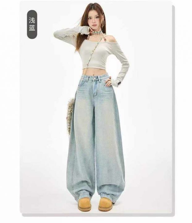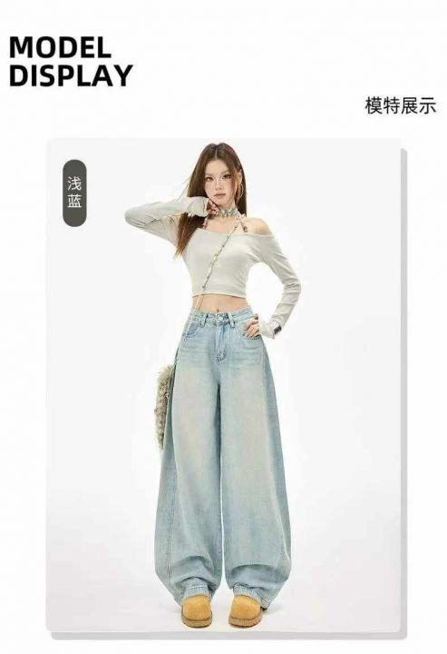 美式浅蓝色弯刀牛仔裤女春夏新款高腰宽松阔腿镰刀裤197条全清12.8元,码数S到XL,正品独立包装,公司单质量很好[庆祝][庆祝][庆祝]