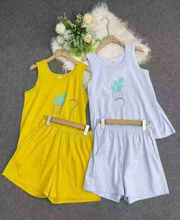506套紧密棉印花休闲背心居家服套装。部分款式刺绣,...