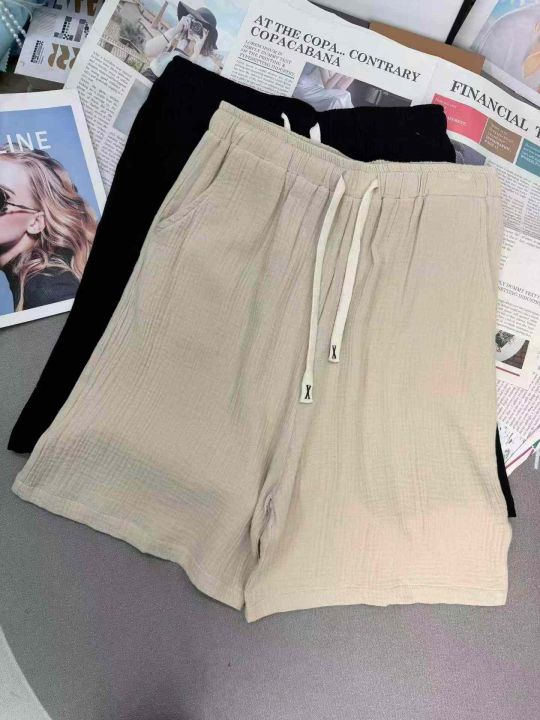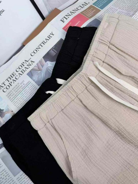 男士棉麻口袋款宽松抽绳 款中裤,整款2色,独立包装,...