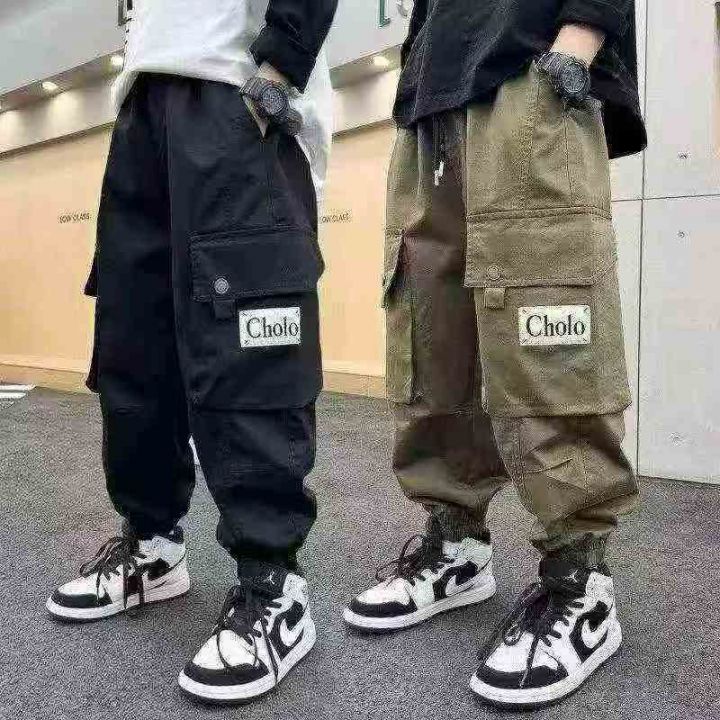 潮牌中大男童休闲宽松多口袋棉工装裤,独立包装,整款两色,码数120-170(大码数多),数量827条,分货加1,(K121)