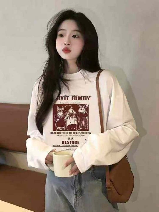 2.5清电商仓回收2500件日系印花宽松潮流慵懒打底长袖T...