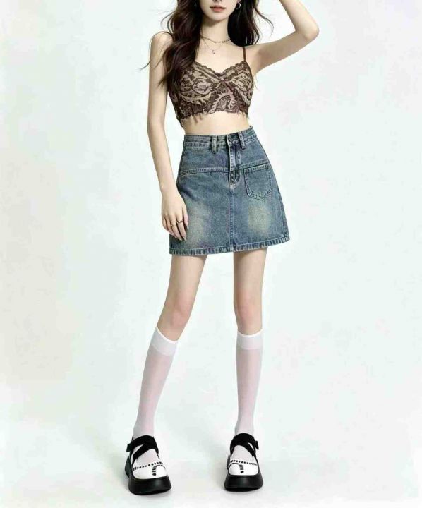 夏季新款洗水棉网红复古工装牛仔短裙,独立包装带腰卡,有内衬,码数S-XL码...