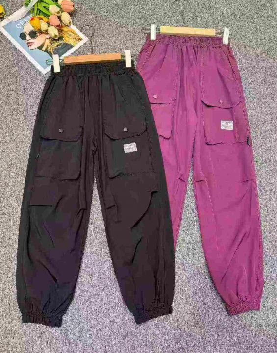 夏季热卖冰丝中大童多口袋潮牌束脚工装裤,独立包装,整款两色(黑色为主),码数120-170,数量352条,(K77)