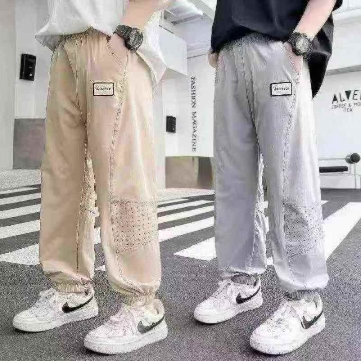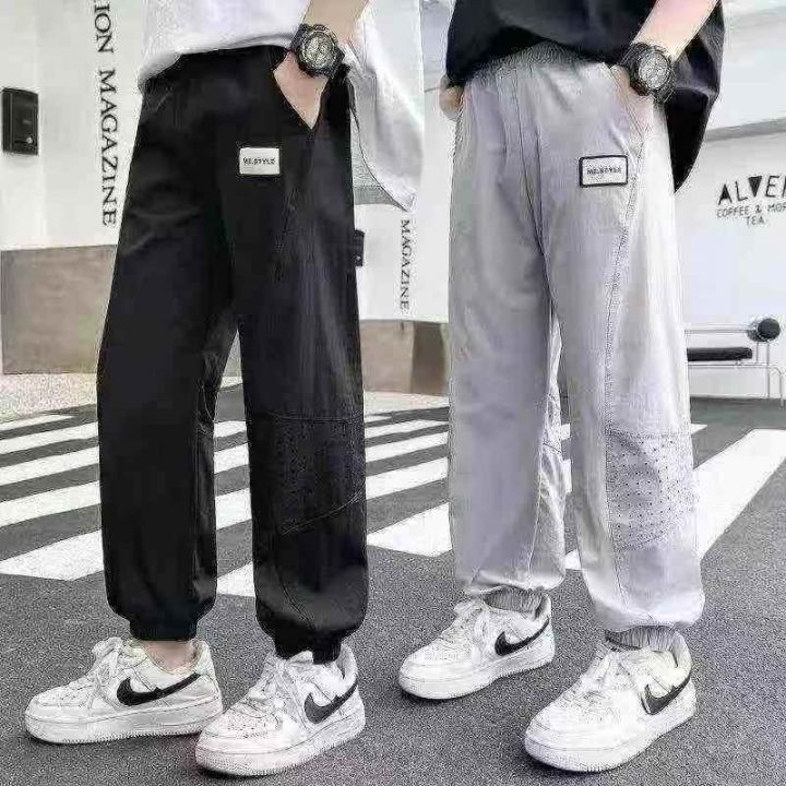 当季热卖中大童冰丝薄款男童透气束脚运动裤,独立包装,整款三色,码数120-170,质量做工,可入实体店,数量903条,分货加1