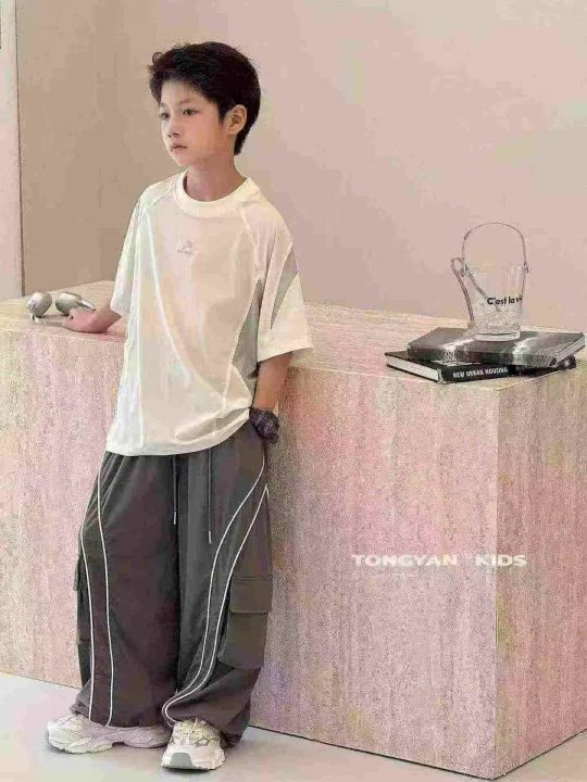 夏季热卖中大童冰丝休闲宽松洋气直筒阔腿工装裤,独立包装,整款三色,码数120-170,数量558条,分货加1,(K100)