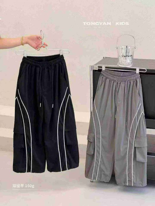 夏季热卖中大童冰丝休闲宽松洋气直筒阔腿工装裤,独立包装,整款三色,码数120-170,数量558条,分货加1,(K100)