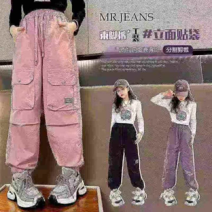 中大童女孩时髦潮酷运动裤休闲工装裤,独立包装,整款三色,码数120-170,数量1827条,分货加1,(K195)