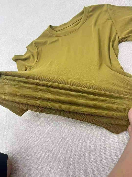 350件冰丝螺纹靓妹T,高弹力,单款单色芥黄色,独立包装,码段M~3XL,全清5.8,分货➕1