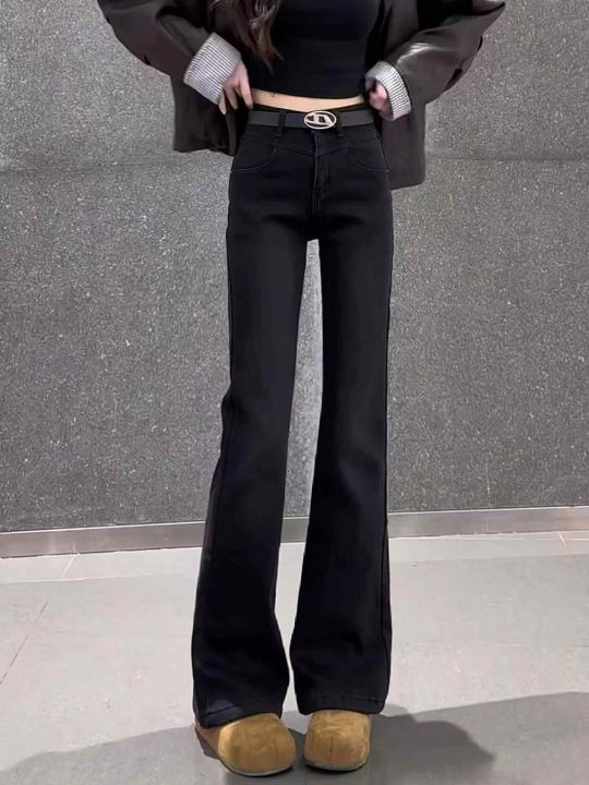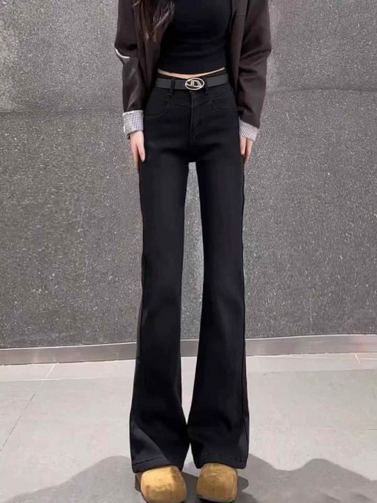 高弹力黑色高腰牛仔裤新款爆款弹力修身显瘦喇叭裤45条...