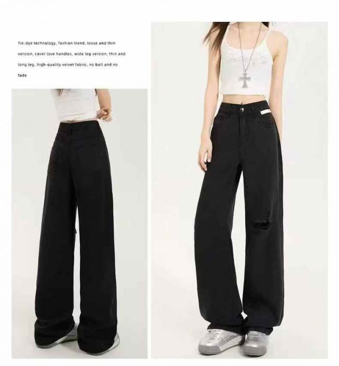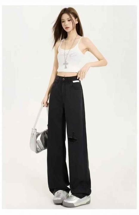黑色天丝牛仔阔腿牛仔裤薄款宽松垂感冰丝直筒裤20条全...