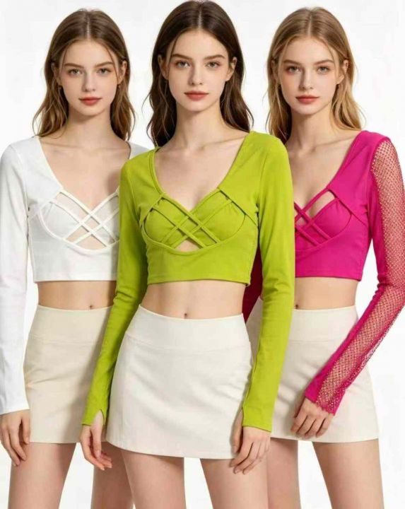 6.8清电商仓回收116件外贸镂空时尚烫钻重工辣妹长袖,...