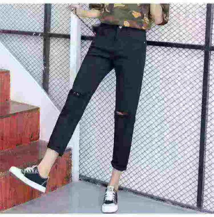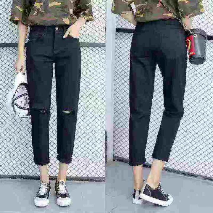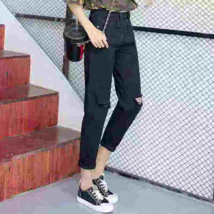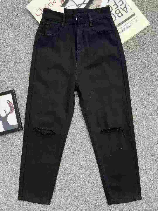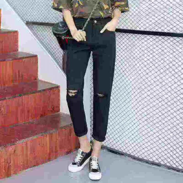 ☕️夏季韩版黑色高腰牛仔裤女时尚个性破洞乞丐显瘦哈伦裤潮460条全清9.9 分货加1元,独立包装,S到XXL码数,货品干净。