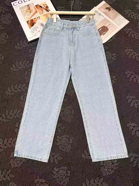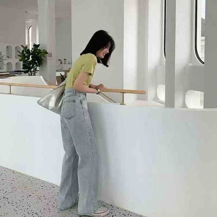 复古水洗浅蓝色阔腿牛仔裤 50件,码数~S一个码,全清10.8元,正品独立包装,货品干净,美式复古水洗浅蓝色牛仔裤女春秋宽松直筒阔腿裤百搭休闲通勤长裤