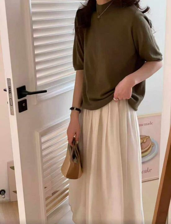 电商仓回收842件韩系知性温柔风针织短袖上衣,码数S-3XL。手感软糯,面料柔软舒适。独立包装,分货➕0.5