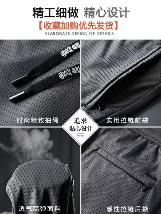 春夏季新款冰丝镂空网眼四面弹男士宽松直筒空调速干休...