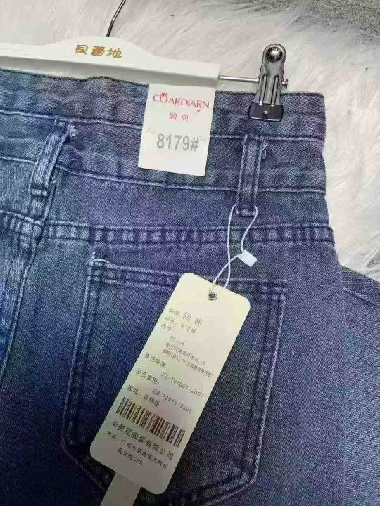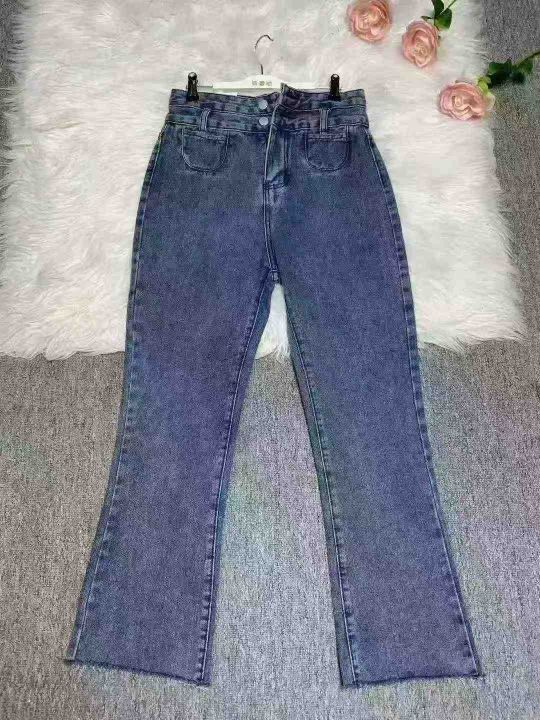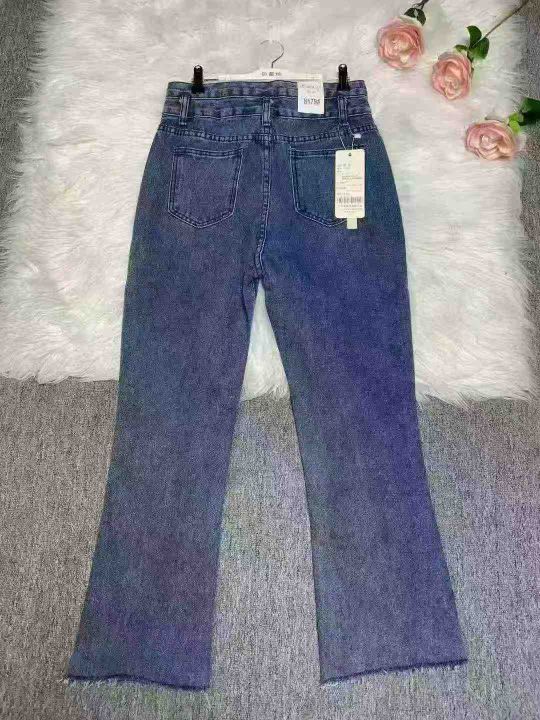 新款百搭显瘦遮胯微喇九分牛仔裤124件,独立包装带吊...