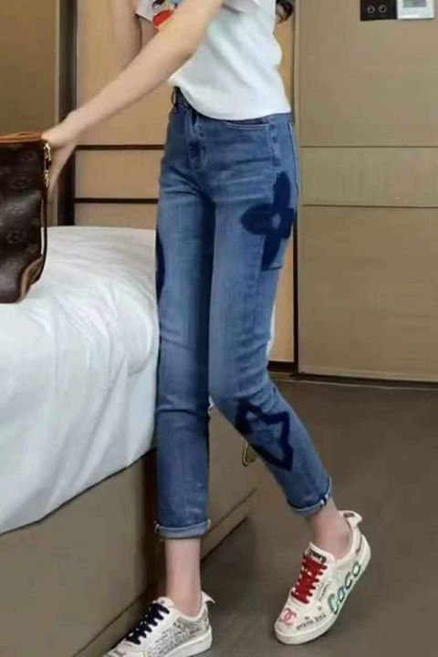 经典印花款高腰弹力女士牛仔裤,单款单色,独立包装,数量200条,S-XL码,...