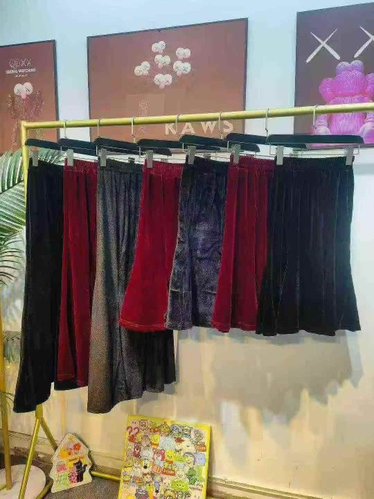 1238件半身裙金丝绒鱼尾裙修身显瘦包臀秋冬装光泽垂感松紧腰高腰长裙,单款两色 黑色为主,两种长度:过膝中长款 长款到脚面,长短款各半 加绒不加绒各半,码数S-3XL码 独立包装。
