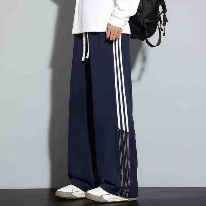 鱼鳞条纹卫裤男春秋款宽松直筒裤子大码三条杠阔腿运动裤,1到5码,独立包装...