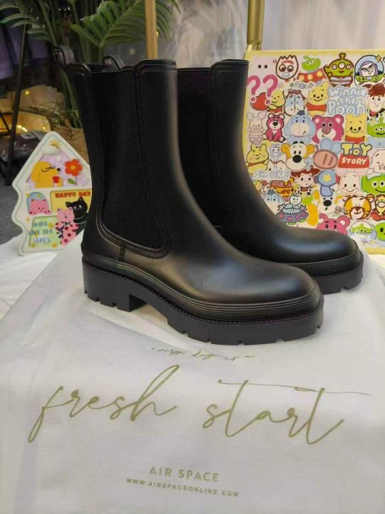 420双 来自中国台湾人气潮流品牌AIR SPACE 厚底中筒高筒晴雨两用防水靴,防滑耐磨、易打理、风格百搭。高筒272双、中筒148双,码数:36-37-38-40-41,无纺布防尘袋箱装,原价几百块一双。