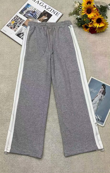春季新款季网红复古直筒束脚2穿纯棉花边阔腿休闲卫裤...