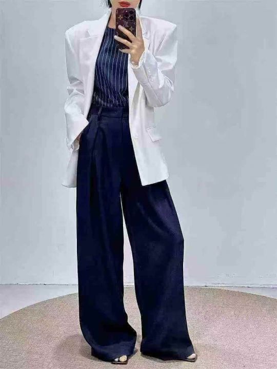 闭眼入系列!☕️复古欧货藏蓝色休闲裤宽松显瘦透气直筒阔腿裤980条全清7.8 分货8.8 ,码数XS到XL,独立包装,单款单色,有长裤/加长尺寸~