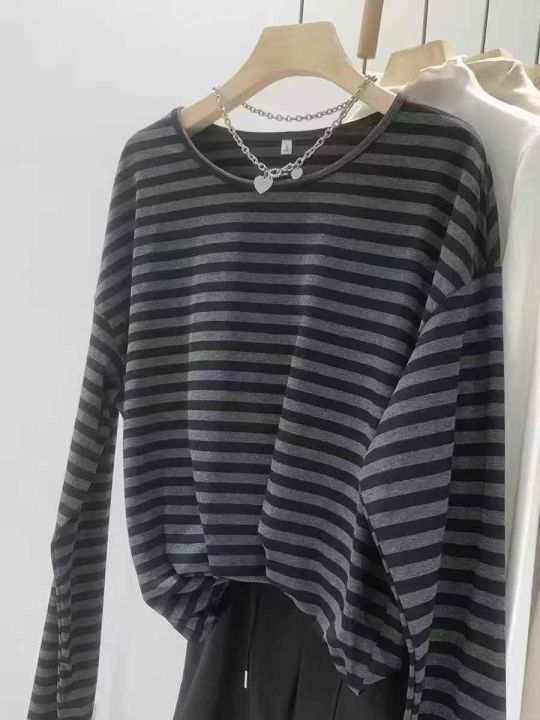 787件男女同款慵懒风春秋冬季打底衫美式条纹长袖t,有...