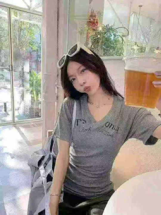 上新全清:5.8一件韩版V领设计感独特别致辣妹T恤,[爱...