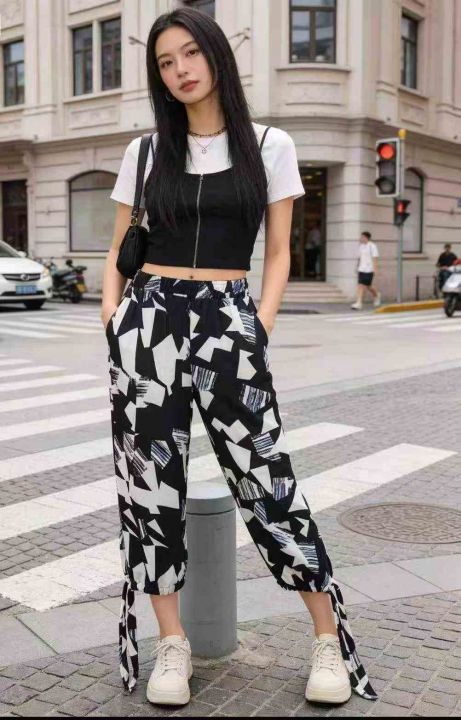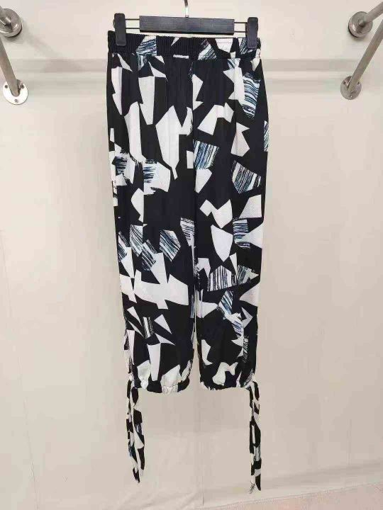 130条几何撞色休闲裤,松紧腰+裤脚抽绳设计 ,单款单...