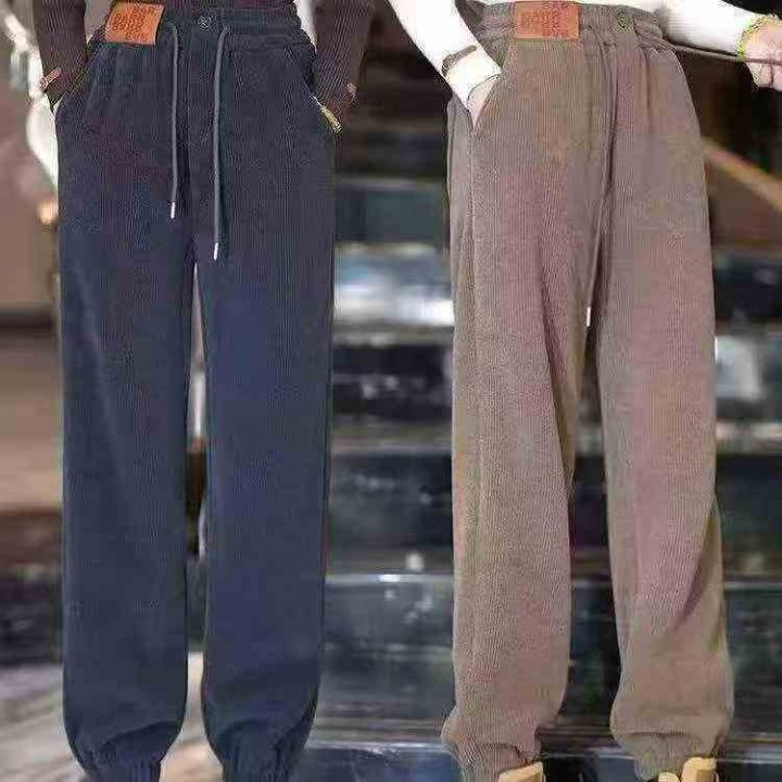 薄款灯芯绒束脚裤,竖条纹理细腻有质感,柔软垂顺不扎...