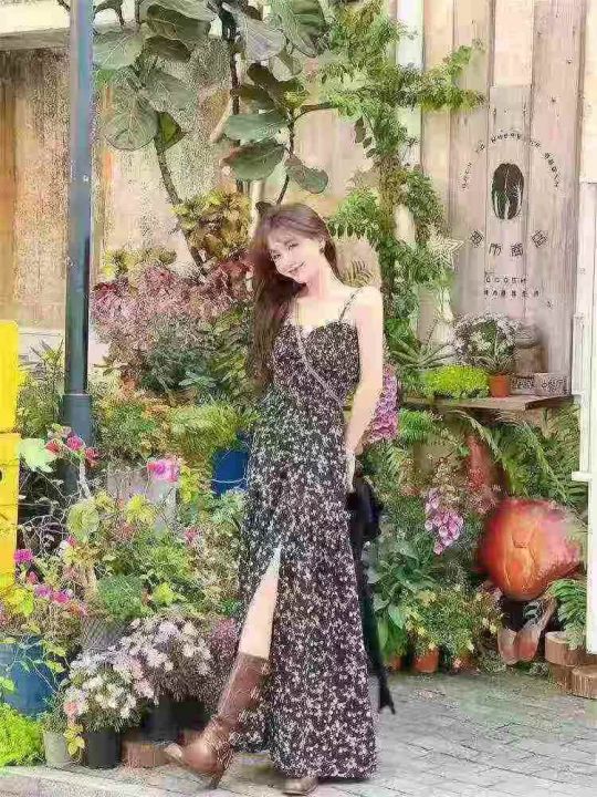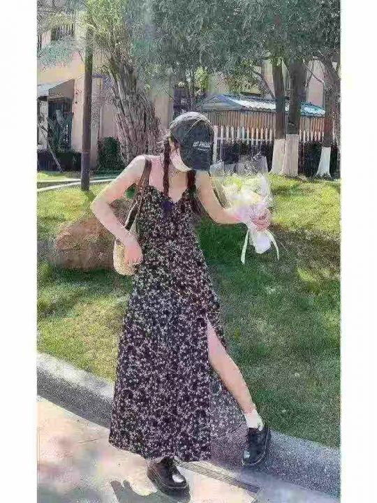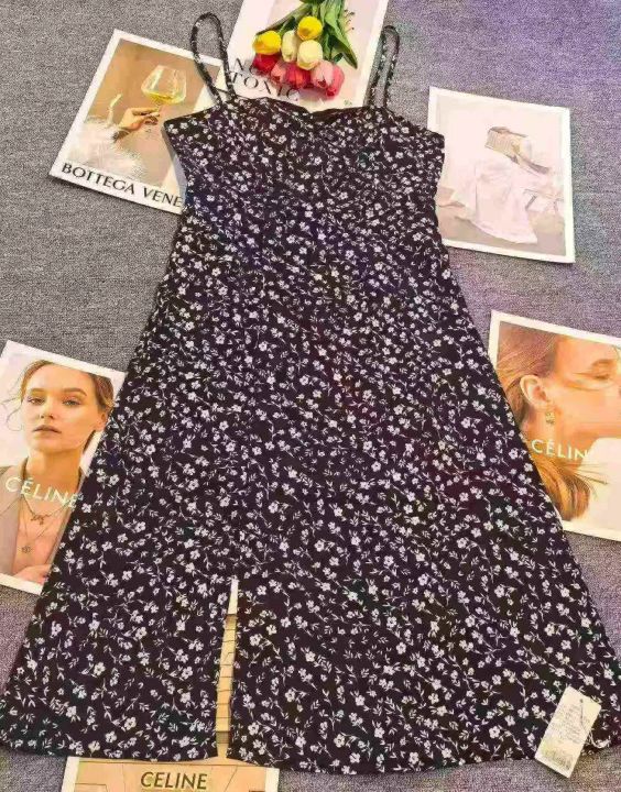 法式茶歇收腰开叉吊带连衣裙,[爱心]90件左右,码数S-XL,穿80-130斤,万佳档口货,原包装️无瑕疵