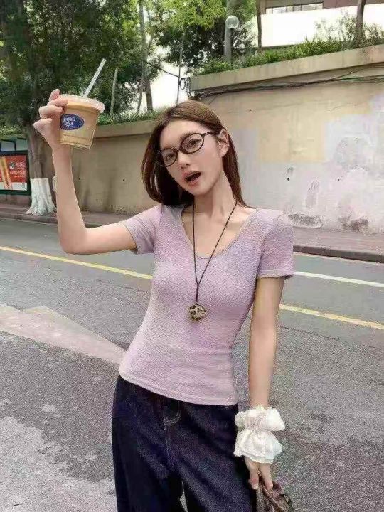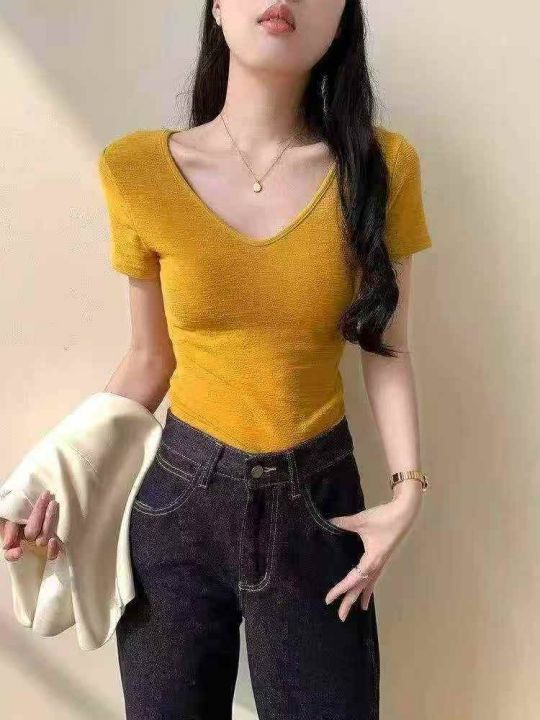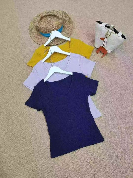 [月亮]:6.5清1240件[月亮]:韩系褶皱肌理感V领正肩T...