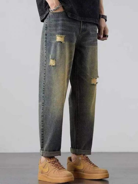 高级感破洞男士美式复古高街潮流宽松牛仔裤,单款单色...