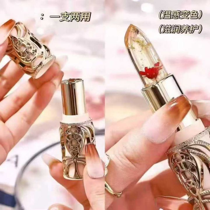 玫瑰鲜花瓣变色口红果冻滋润不沾杯口红不掉色防水保湿...