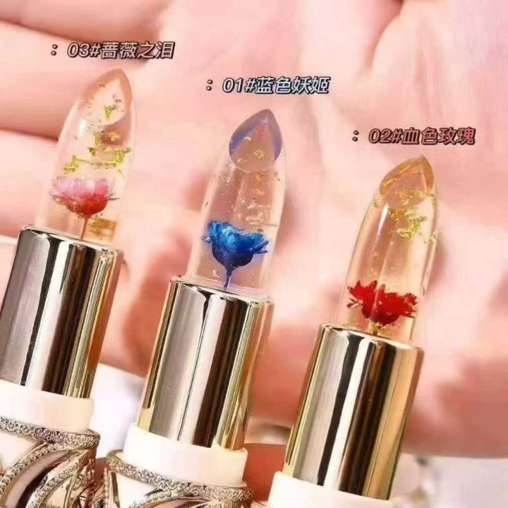 玫瑰鲜花瓣变色口红果冻滋润不沾杯口红不掉色防水保湿