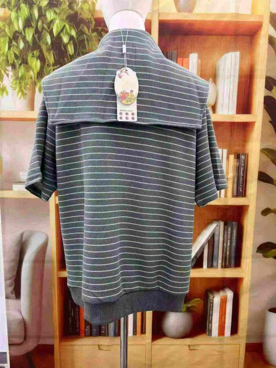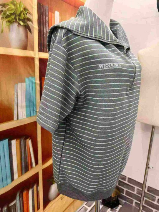 64件灰蓝翻领条纹半拉链针加厚宽松外穿打底polo上衣,独立包装带吊牌,码数S-XL。