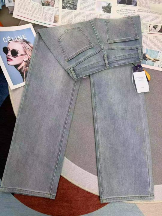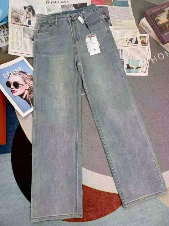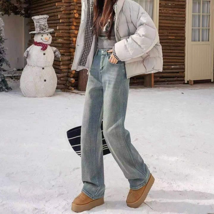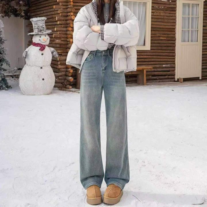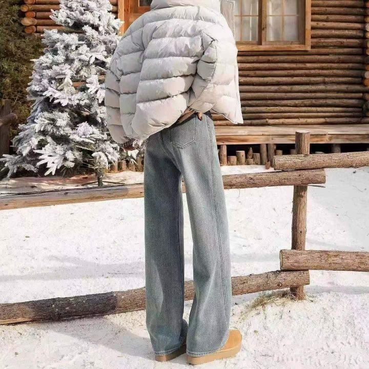 浅蓝色植绒阔腿弹力牛仔裤,单款单色,独立包装,数量...