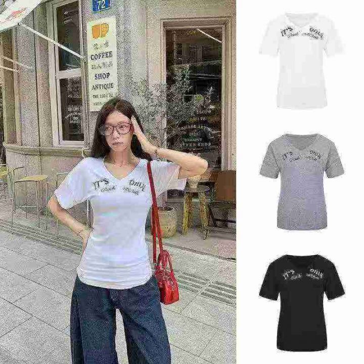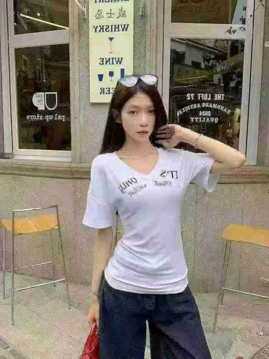 上新全清:5.8一件韩版V领设计感独特别致辣妹T恤,[爱...