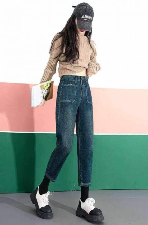 大码宽松哈伦高腰显瘦老爹牛仔裤,单款单色,独立包装...
