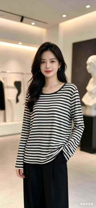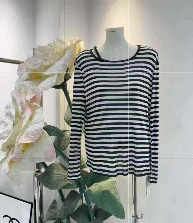 9.9慵懒风复古条纹休闲长袖T恤女夏季薄款宽松显瘦防晒内搭打底上衣,总共200多件,可清可分