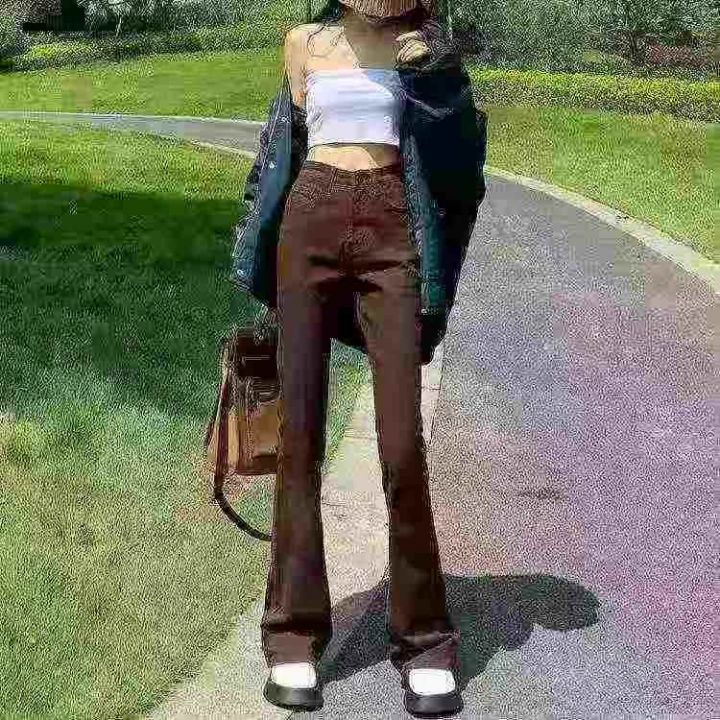☕️高弹力棕色微喇叭牛仔裤女秋季新款高腰弹力修身显瘦百搭长裤205条全清1...