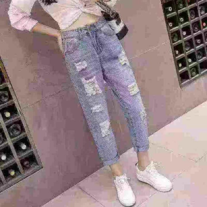 ☕️高腰破洞宽松哈伦裤女夏季显瘦老爹乞丐裤 717条全清9.9元,分货+1 码数...