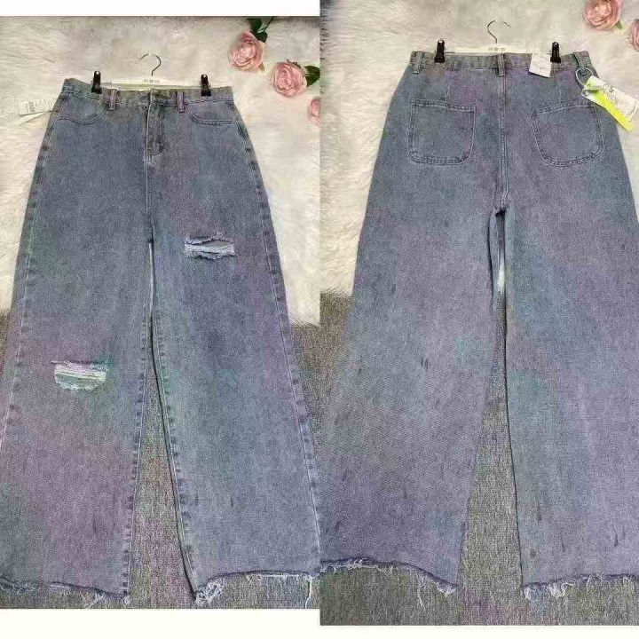 靓妹辣妹破洞阔腿牛仔裤450件,图片款式,独立包装带吊牌,货品干净整洁,尺码S~5XL,全清福利价8.8元分货➕1