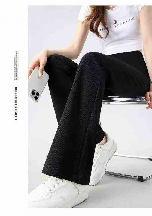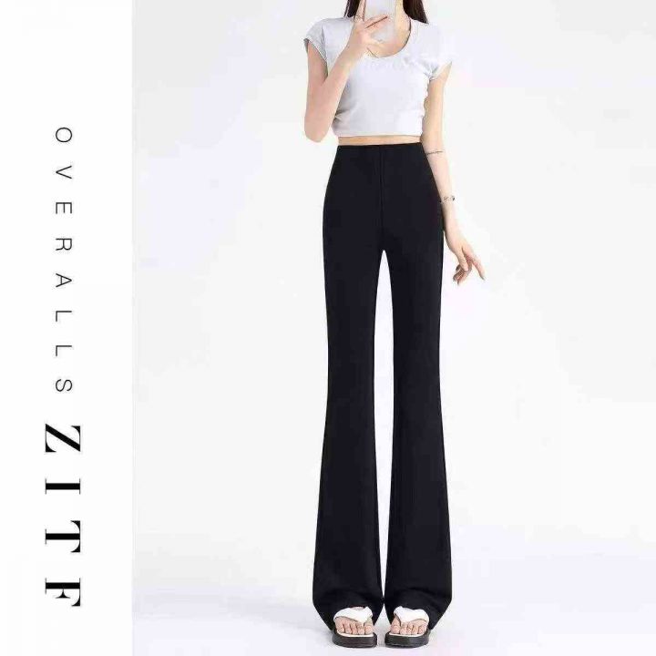 ☕️弹力黑色喇叭裤女新款夏季高腰显瘦休闲微喇裤300...