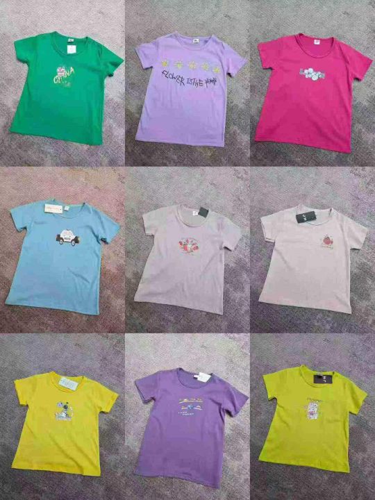 3️⃣糖果色棉质童装短袖T恤35000件,码数M-2XL,独立包装带吊牌,图案花色很多不仅限于图片款