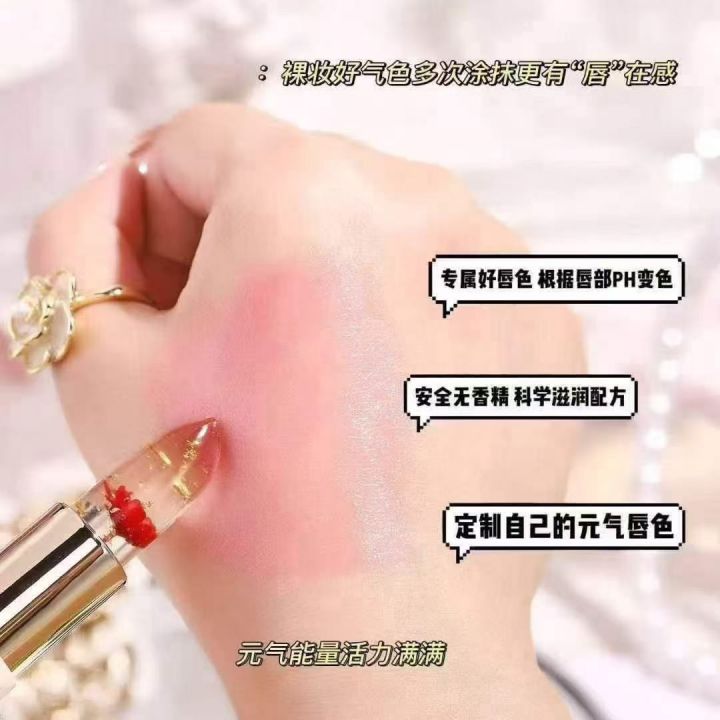 玫瑰鲜花瓣变色口红果冻滋润不沾杯口红不掉色防水保湿